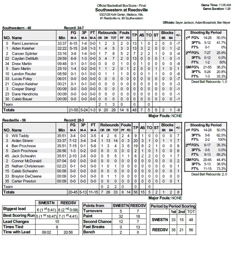 State Tournament Box Score Home