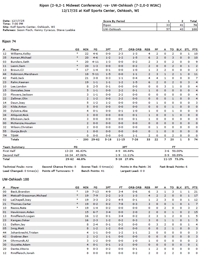 WIAC Box Score Home