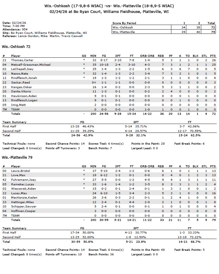 WIAC Basketball Standings