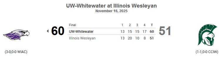 UW-Whitewater-None ; Illinois Wesleyan-None .