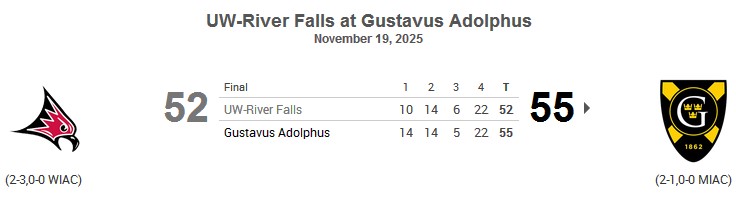 UW-River Falls-None ; Gustavus Adolphus-None .