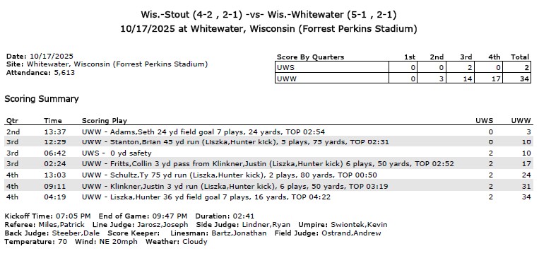 WIAC Football Standings